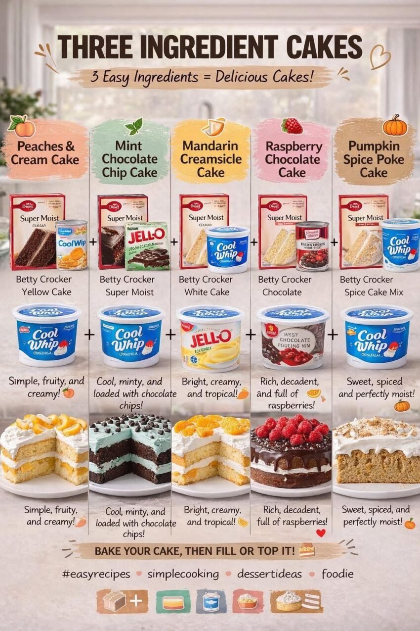 Ah! You’re talking about those magical “three-ingredient cakes” — ultra-simple desserts that require almost no effort but still taste amazing. They usually rely on combining a box of cake mix, eggs, and oil (or sometimes butter) to create a fluffy, moist cake in minutes. Here’s a breakdown: