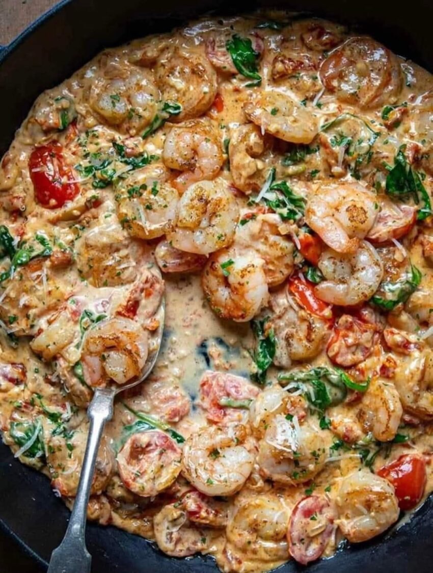 - Return shrimp to the skillet and toss to coat in the creamy sauce.